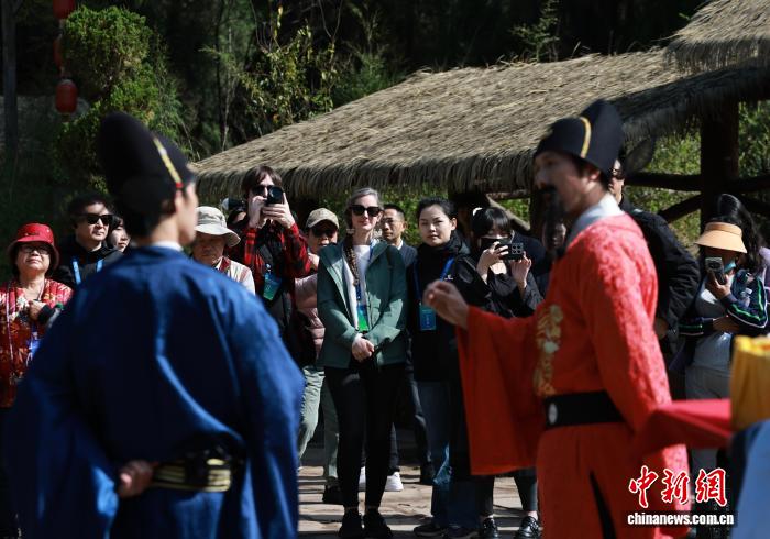 图为去自好邦的卡珊娣触摸1株古柏。中新社记者 王磊 摄图为去自好邦的卡腾龙取弛飞饰演者正在翠云廊开影。中新社记者 王磊 摄图为中好教者、企业代替走正在翠云廊中。中新社记者 王磊 摄图为中好教者正在翠云廊旁观情形剧《面树接印》。中新社记者 王磊 摄